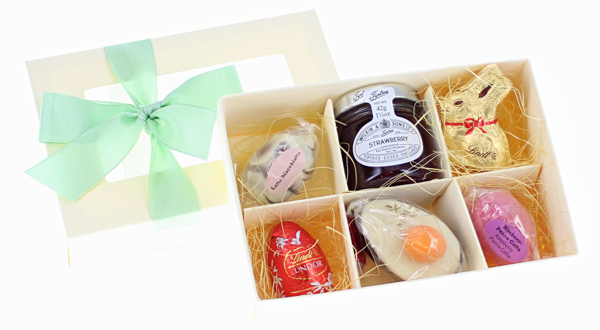 ... mit Trüffeleiern, Marzipan, Frühstückskonfitüre und Lindt Mini-Goldhäschen